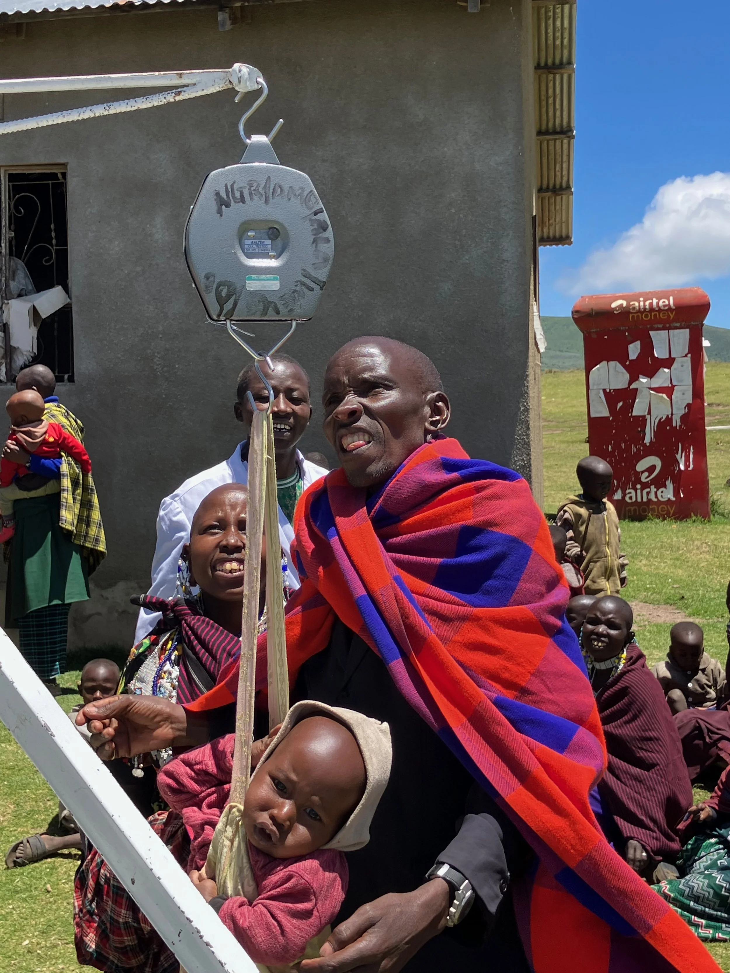 Leshengai oversees the weighing of all children under 5 years present at the mobile medical clinic at Sendui post.